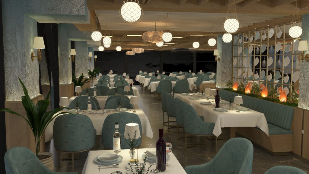 Mekânda kullanılan objeler modern bir dil taşırken, sade formlar sayesinde mekânın genel dokusuyla uyum içinde bir bütünlük sağlandı. Hem geleneksel öğelere gönderme yapan hem de çağdaş tasarım anlayışını benimseyen bu restoran, ziyaretçilerine rafine bir deneyim sunuyor.