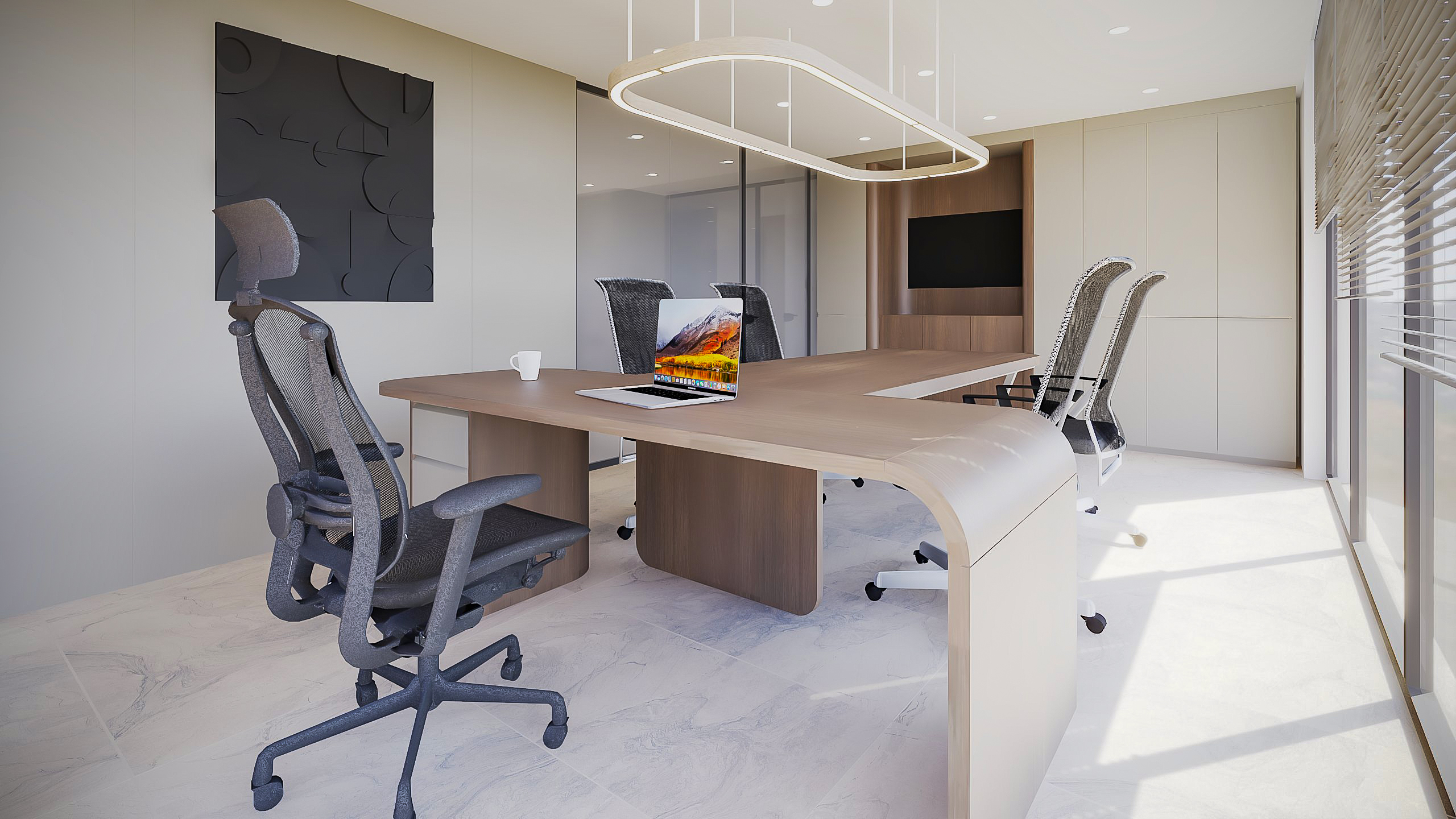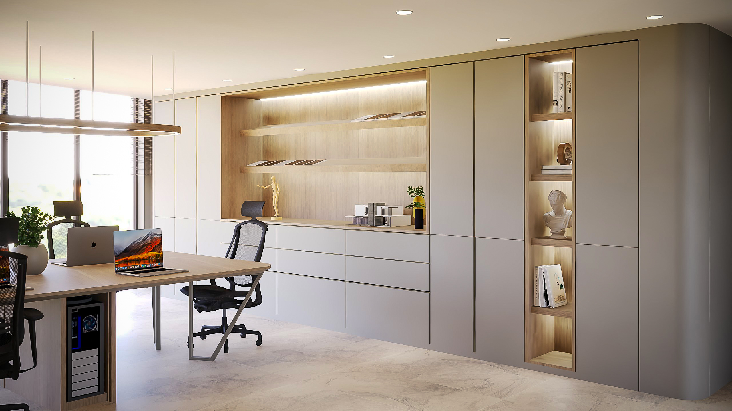 SY Mimarlık Ofisi tasarımında, açık tonlar ve sade çizgilerle ferah bir çalışma ortamı yaratıldı. Mekânın genel atmosferi, modern tasarım anlayışıyla bütünleşerek yalın ama güçlü bir iç mekân kurgusu sundu.